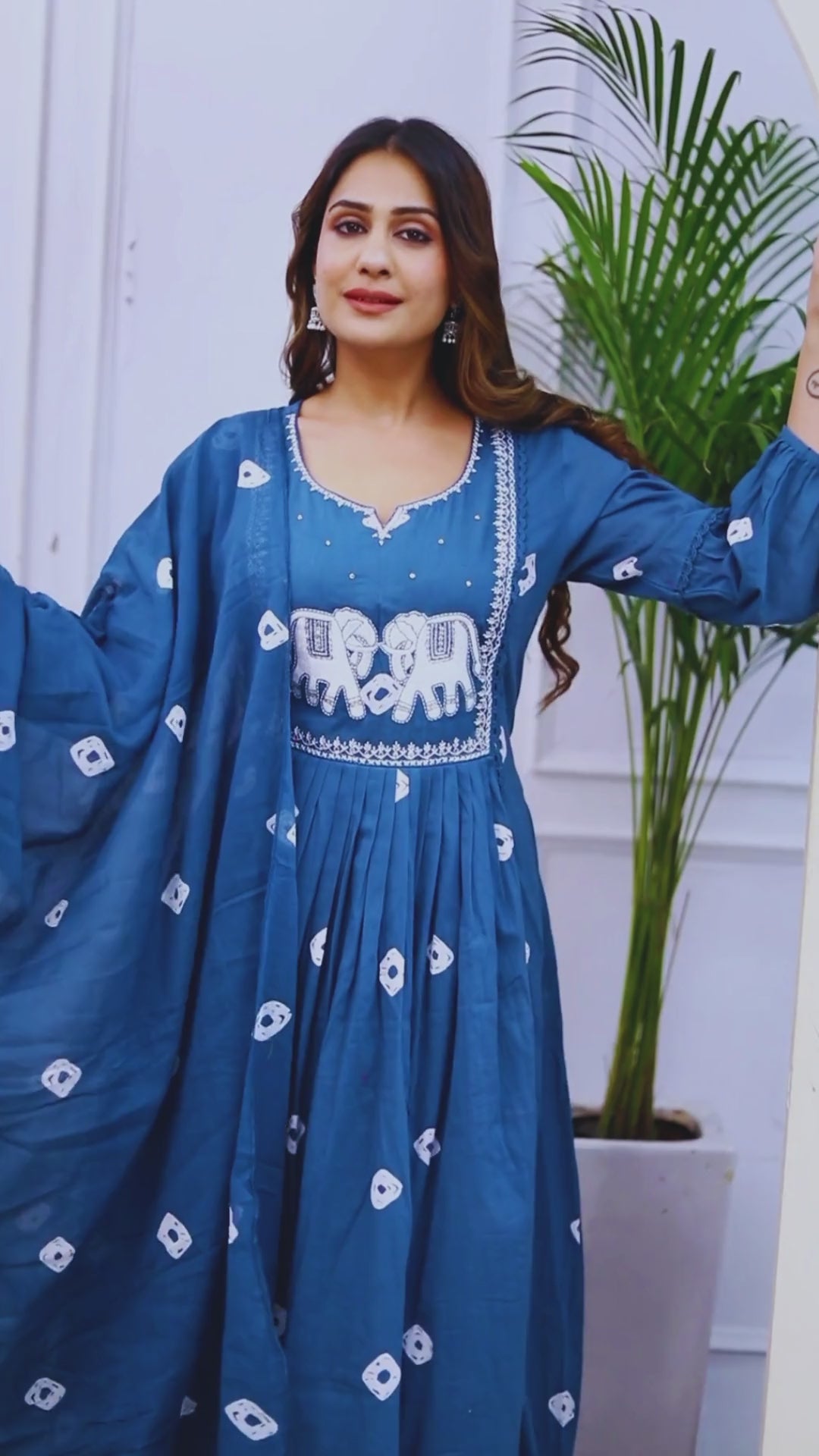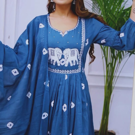 Bandhani Print Embroidered Blue Suit Set