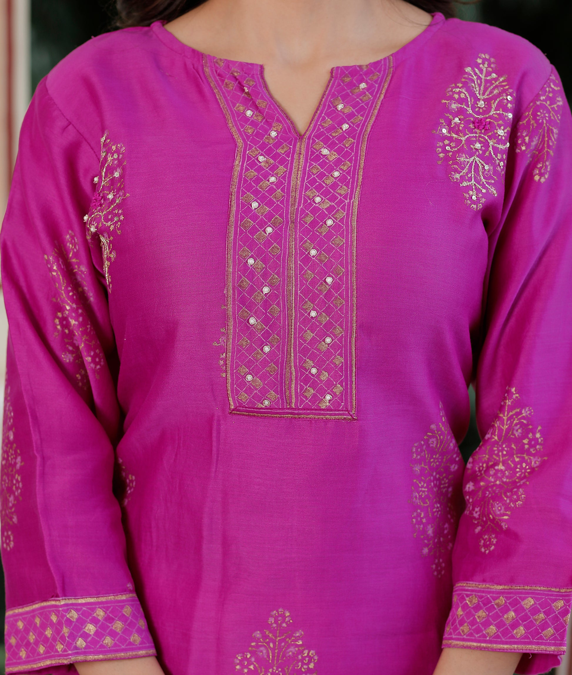 Royal Fuchsia Radiance – Pure Chanderi Silk Handcrafted 3-Piece Suit Set - An Ode to Timeless Indian Grandeur.